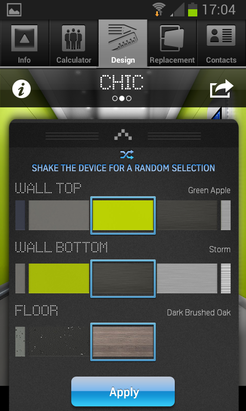 Calculate the optimum cabin dimensions for your project or design your individual cabin. Select from the three design lines STYLE, CHIC and ELEGANT with their flexible configuration options or simply shake your iPhone for a random selection. Save your design in your photo app or send your desired configuration directly to your personal contact.