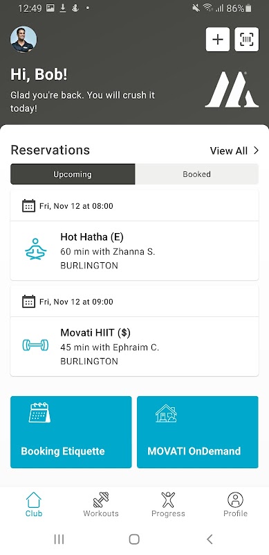 क्लब में और Movati एथलेटिक एप्लिकेशन के साथ जाने पर अपनी कसरत को ट्रैक करें।