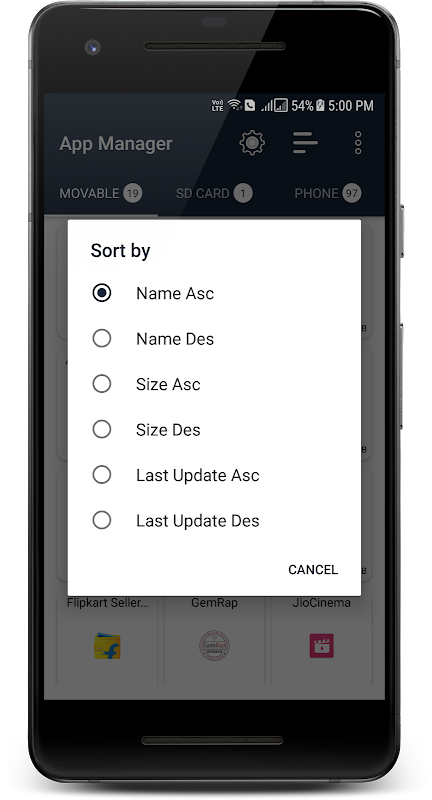 ❺➤Sorting Apps ∶ App Manager provide sorting functionality to help users to sort and manage apps•✓