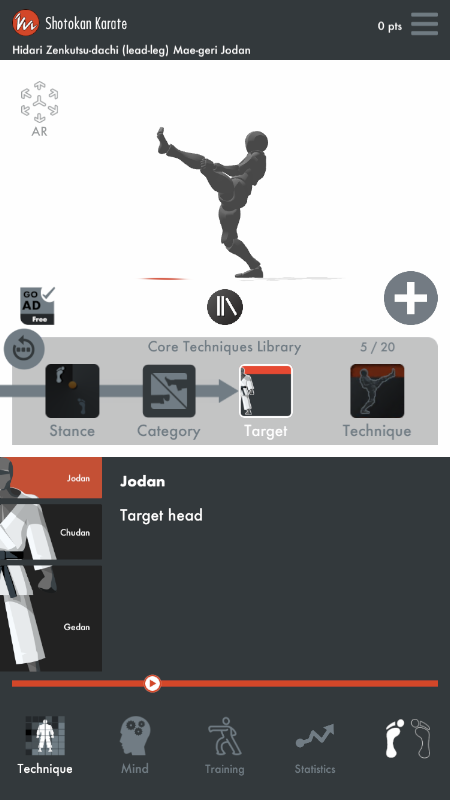 कोर तकनीक: आपको स्टांस श्रेणी (पंच किक और रक्षा) और लक्ष्य के आधार पर 160+ (और बढ़ती) तकनीकों की खोज करने की अनुमति देता है।