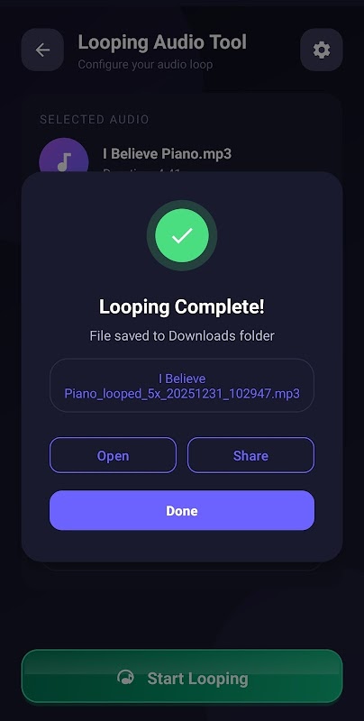 MP3, WAV और M4A फ़ाइलों को आसानी से लूप करें। अपने ऑडियो ट्रैक को 7 बार तक दोहराएं।