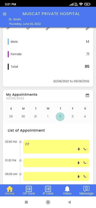 3. List of operations scheduled today to the provider.