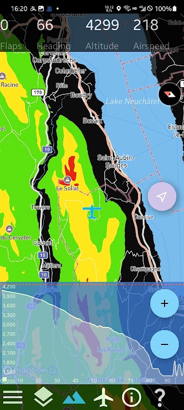 🌈-डायनेमिक टेरेन डिस्प्ले, जो आपको पहाड़ या बादलों के बीच से उड़ते समय सुरक्षित बनाता है