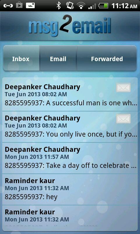 Msg2email is a utility application developed for working professional; those do not get much time to check their phone text messages and are comparatively more comfortable & active on their emails.