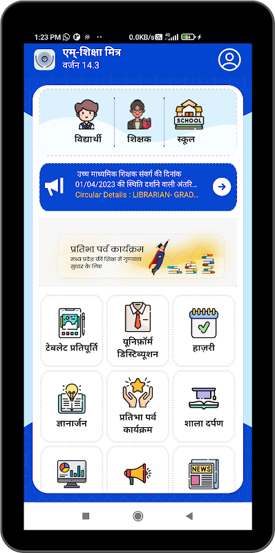 यह शिक्षकों, छात्रों, अभिभावकों, स्कूल, ब्लॉक, जिला और राज्य स्तर के प्रशासकों को मोबाइल आधारित सेवाओं की सुविधा प्रदान करता है।