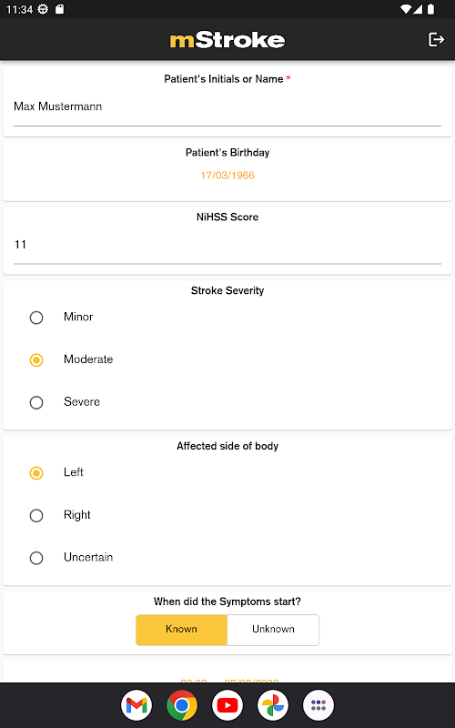 रेडियोलॉजी ऐप mRay के विस्तार के रूप में, mStroke स्ट्रोक की देखभाल के लिए एक डिजिटल साथी है। ऐप का उपयोग रोगी के डेटा के साथ-साथ स्ट्रोक-विशिष्ट जानकारी, जैसे कि लक्षण शुरू होने का समय या गंभीरता का आकलन करने के लिए स्कोर रिकॉर्ड करने के लिए किया जा सकता है। यह जानकारी तब आपके नेटवर्क में वांछित क्लिनिक के mRay सर्वर को भेजी जा सकती है।