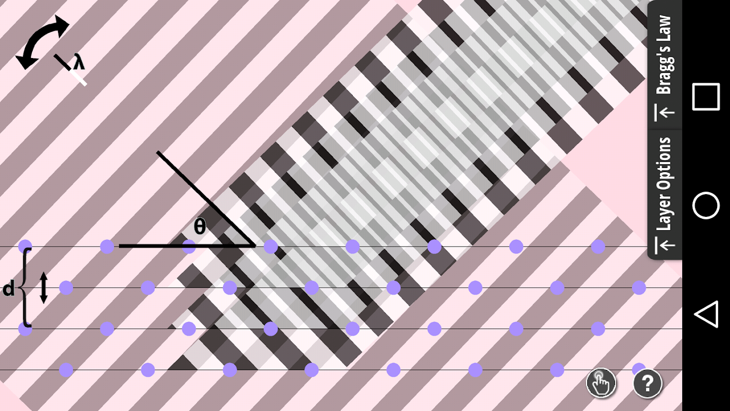 एक्स-रे की रचनात्मक और distractive हस्तक्षेप क्रिस्टल में कैसे होता है यह आवेदन का अध्ययन करने की अनुमति देता है। आने वाली एक्स-रे किरण के कोण, परमाणु विमानों की रिक्ति, या एक्स-रे की तरंग लंबाई को बदलें और परिलक्षित बीम पर उनकी तत्काल प्रभाव देखते हैं।