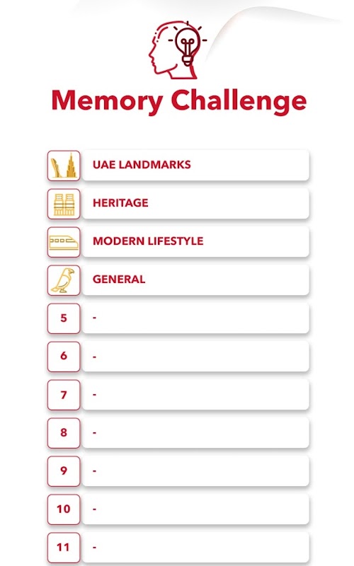 मेमोरी चैलेंज एक मिश्रित दृष्टिकोण वाला गेम है जिसमें चित्र मेमोरी, सामान्य क्विज़ और एक बोनस गेम शामिल है।