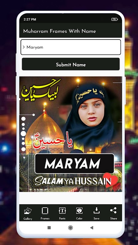 अब "मुहर्रम फोटो फ्रेम विद नेम डीपी मेकर" ऐप डाउनलोड करें और रचनात्मकता और श्रद्धा की दुनिया को अनलॉक करें। मुहर्रम को एक अनूठे और वैयक्तिकृत तरीके से मनाएं, अपनी बनाई हर तस्वीर में इस पवित्र महीने का सार कैद करें।