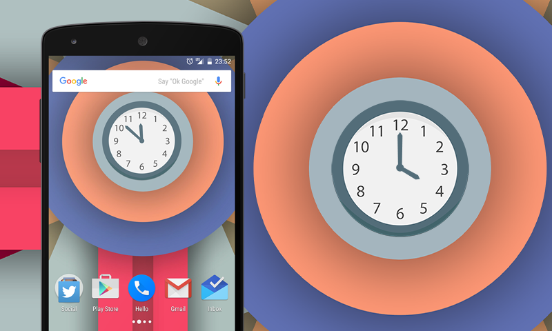 Please enjoy personalization of your home screen with this multicolor analog clock Widget. Please tap on the widget to change a clock color design on single click.