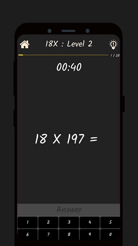 It has unlimited levels, and once you completed with the presented question, the app will automatically take you to the next level. Currently, most of the questions are based on multiplication, but we'll add several types of problems.