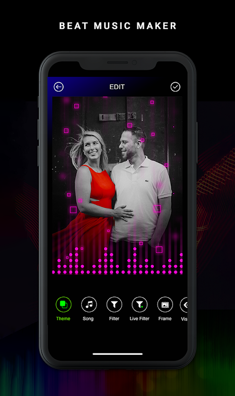 Music Bit - Particle.ly Video Statusr app Create photo to video maker with plenty of Music and Theme with Beat wise Particle, Spectrum, Visualizer, Equalizer, DJ flash and Wave music.