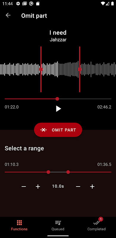 • ऑडियो ट्रैक के एक सेक्शन को ऑमिट या ट्रिम करें।