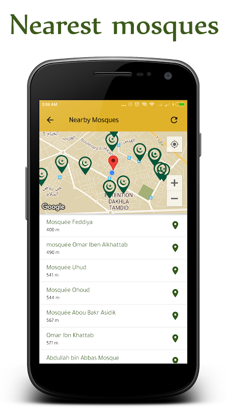मस्जिदों के पास खोजक आपको अपने वर्तमान स्थान में किसी भी नजदीकी मस्जिदों के बारे में जानकारी प्राप्त करने में मदद करते हैं।