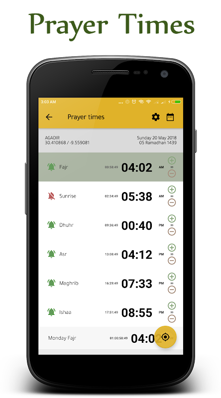 दैनिक इस्लैमिक अथन के साथ प्रार्थना टाइम्स और क़िबला, पवित्र कुरान, अज़कार, पास की मस्जिदें