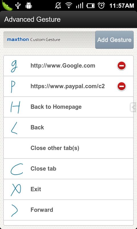 With this add-on, you can now create your own gestures for browser short-cuts. For example, you can set up gesture "F" for facebook.com, "G" for google.com, etc