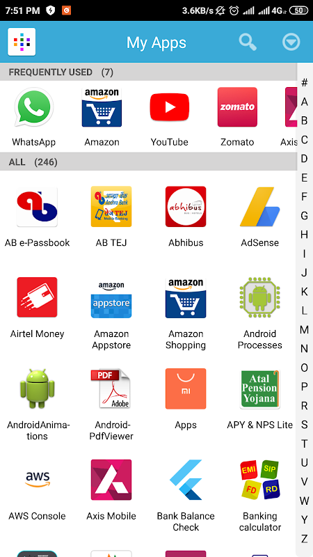 -> डिफ़ॉल्ट रूप से ऐप्स को वर्णानुक्रम में व्यवस्थित करें