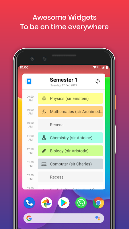- अपने शेड्यूल में चल रहे और आने वाले वर्गों को दिखाने वाले लाइव संकेतक