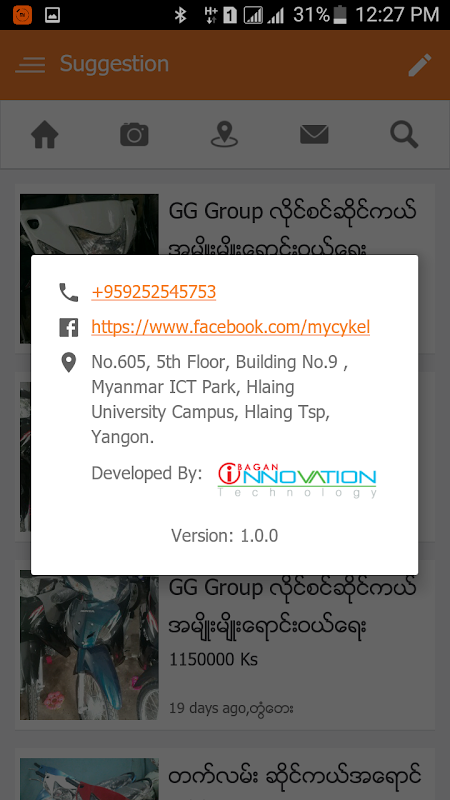 ျမန္မာႏိုင္ငံ၏ ပထမဆံုးေသာ ဆိုင္ကယ္ ဝယ္ေရာင္း Mobile Application ျဖစ္ပါတယ္။ ဆိုင္ကယ္ အမ်ိဳးအစားေပါင္းမ်ားစြာ ကို တစ္ေနရာထဲမွာ ၾကည့္ရွုႏိုင္မွာပါ။