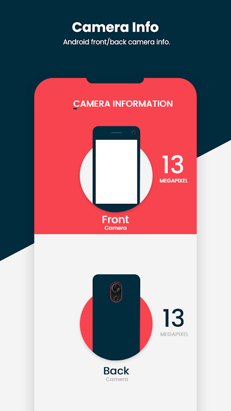 - कैमरा जानकारी - आपको मेगापिक्सेल में रियर और फ्रंट कैमरा जानकारी दिखाती है।
