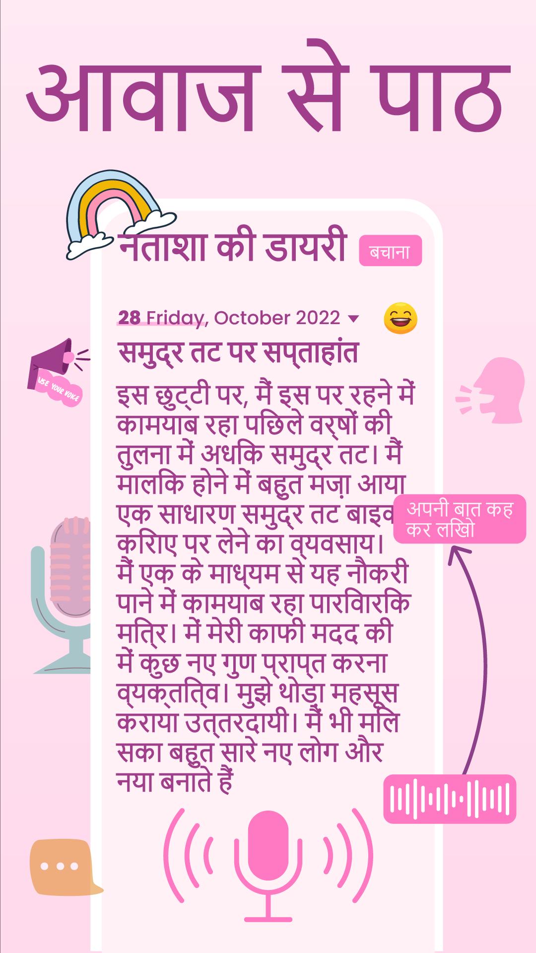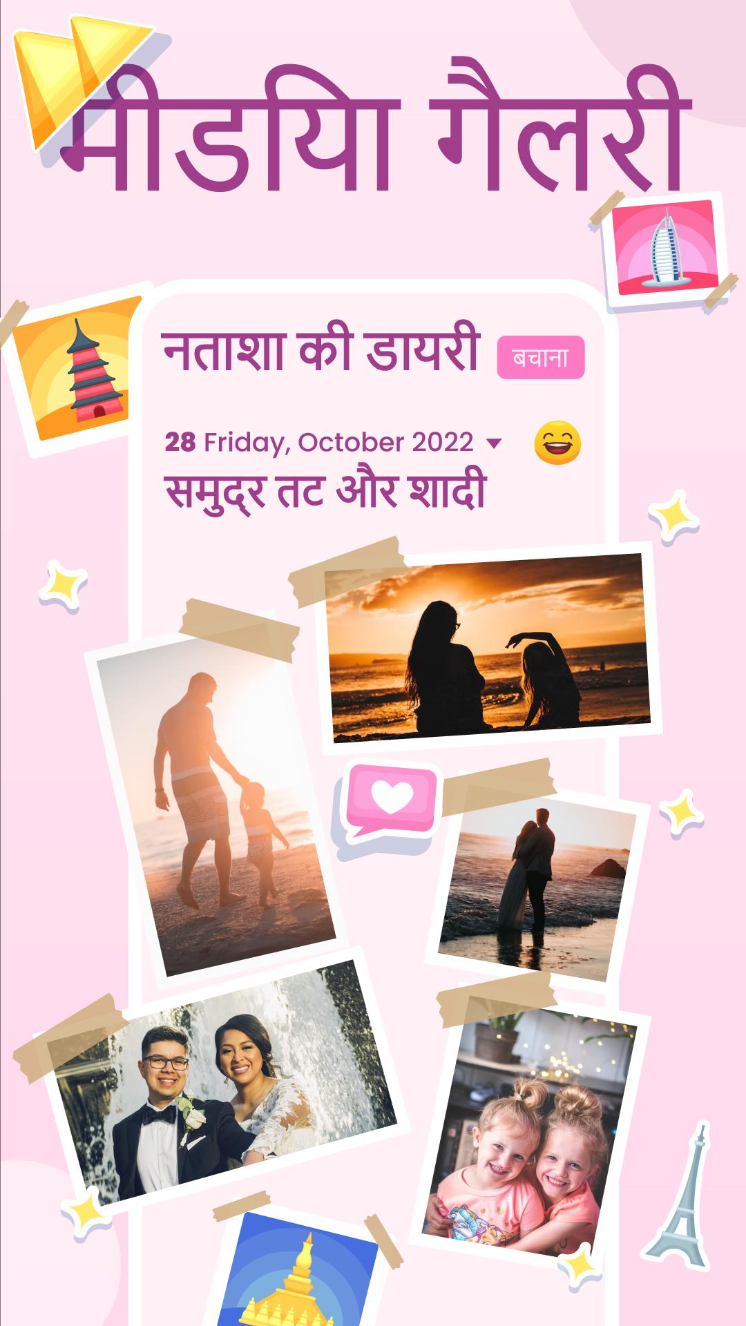 लड़कियों के लिए इस दैनिक डायरी पत्रिका के साथ अपनी यादगार यात्राओं, गुप्त विचारों और दैनिक मनोदशाओं पर नज़र रखें। डेली जर्नल डायरी ऐप जर्नलिंग ऐप आपको यह बताने में मदद करेगा कि आप कितनी दूर बदल गए हैं। आप चित्र, ऑडियो और सरल पाठ जोड़कर अपनी यादों और यात्राओं को रिकॉर्ड कर सकते हैं। दैनिक पत्रिका ऐप आपको अपने चित्र को गुप्त नोट्स में जोड़ने की सुविधा भी देता है।