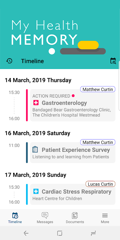 My Health Memory is an alert-driven health-management tool for patients of The Sydney Children’s Hospital’s Network. Using the app, patients and their guardians will be able to manage upcoming appointments, receive alerts and information from the patient’s Care Team.