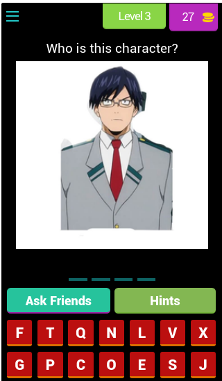 इस गेम में, आप माई हीरो एकेडेमिया एनीमे के पात्रों का अनुमान लगाएंगे।