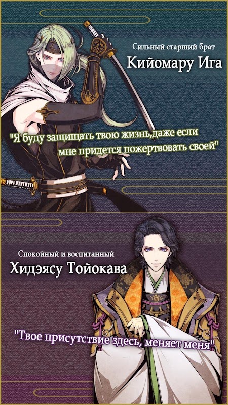 Вы Берете на себя роль главной героини и переживаете романтические отношения с красивыми, молодыми ниндзя, которые поклялись защищать Вас
