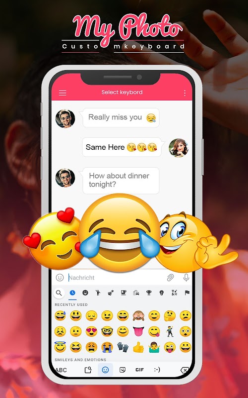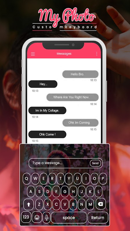 चित्र कीबोर्ड का उपयोग कस्टम कीबोर्ड पृष्ठभूमि और मेरी तस्वीर के लिए किया जाता है।