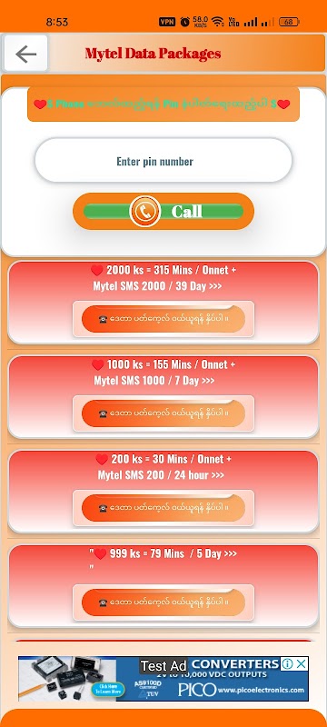 आप आसानी से डेटा पैकेज / Mytel My Business कार्ड MB डेटा खरीद सकते हैं