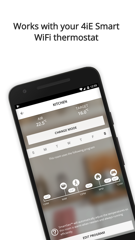 MyHeating आपके घर को सही तापमान पर स्वचालित रूप से रखने के लिए आपके वार्मअप स्मार्ट वाईफाई थर्मोस्टेट के साथ काम करती है। यह पृष्ठभूमि में गणना करने के लिए आपके स्मार्टफोन में पहले से निर्मित स्थान सेवाओं का उपयोग करता है कि आपको घर पहुंचने में कितना समय लगेगा और उसके अनुसार तापमान सेट करें, इसलिए जब आप वहां हों और हमेशा कुशलता से चल रहे हों तो आपका घर अपने आप आरामदायक हो जाता है।