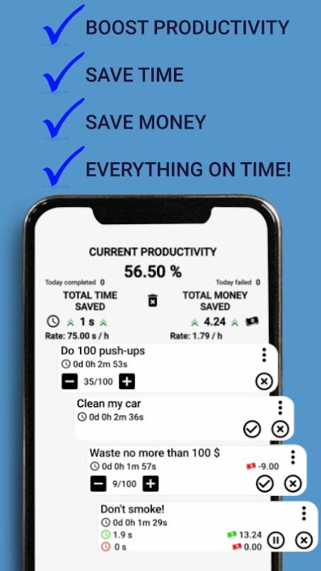 वास्तविक समय में अपने कार्यों, लक्ष्यों, आदतों और उत्पादकता को ट्रैक करें। पैसे और समय बचाओ!
