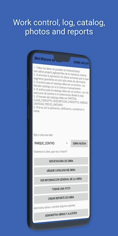 तो इस ऐप के साथ आप अपने दैनिक गतिविधियों पर नियंत्रण कर सकते हैं, जो कुछ भी आपको महत्वपूर्ण लगता है उसकी तस्वीरें ले सकते हैं, सिविल कार्य में होने वाली प्रत्येक महत्वपूर्ण चीज के नोट्स सहेज सकते हैं और रिपोर्ट बना सकते हैं।