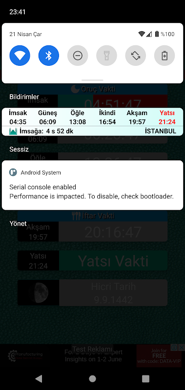 - कराहत समय (सूर्योदय और मगरिब से 45 मिनट पहले) के दौरान, शेष समय कार्ड पर "कराहत समय" लिखा दिखाई देगा।