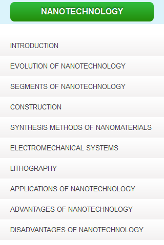 नैनो विज्ञान और प्रौद्योगिकी के एक अंतःविषय क्षेत्र है. यह सब विज्ञान, जीव विज्ञान के क्षेत्रों, भौतिकी और रसायन शास्त्र से संबंधित है. यह आवेदन नैनो के विभिन्न पहलुओं के माध्यम से एक व्यापक गाइड है. हम शिक्षार्थियों विशेषता तकनीक-SEM, मंदिर, एक्सआरडी, एक्सआरएफ, FTIR, एसटीएम, AFM, DLS, नैनो सामग्री, कार्बन नैनोट्यूब, फुलरीन, Nanowires, Nanosensors, संश्लेषण nanorobots तरीके की तरह विभिन्न Nanotechnologies के बारे में पता करने के लिए इस आवेदन बहुत उपयोगी है विश्वास Solgel, मैकेनिकल पीस, स्प्रे Pyrolysis, सीवीडी, एमबीई, पीवीडी, इलेक्ट्रॉनिक्स, sputtering एमईएमएस, NEMS. और लिथोग्राफी-Photolithography, इलेक्ट्रॉन बीम लिथोग्राफी, एक्स रे लिथोग्राफी, लिथोग्राफी, Nanoimprint लिथोग्राफी, आयन बीम लिथोग्राफी, मिथ्या लिथोग्राफी, स्टैंसिल लिथोग्राफी, AFM के लिथोग्राफी EUV.