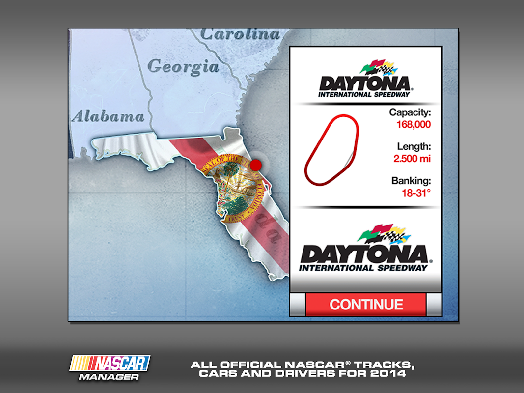Pick your pitstop strategy, tire use and driving style as you attempt to guide your driver from the back of the pack to the winner's circle. Improve your chances of success between races by upgrading the car, training the team and negotiating sponsorship deals in order to take your driver from rookie to Chase winner. Featuring all the officially licensed tracks and drivers of the 2014 season, compete against (and beat) the stars of the sport like Dale Earnhardt Jr, Jimmie Johnson and Danica Patrick to see your driver crowned NASCAR Sprint Cup Series Champion!