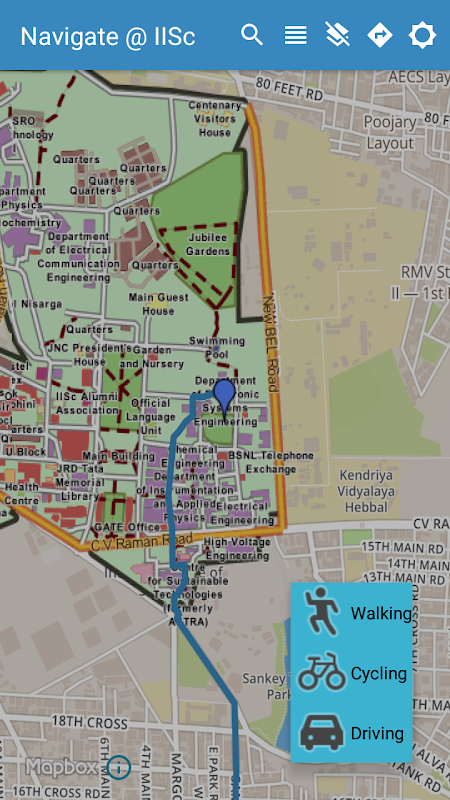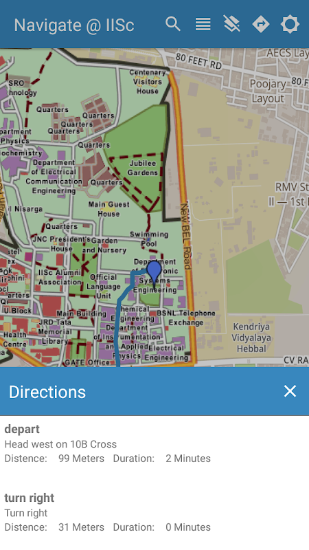 एप्लिकेशन को एक भारतीय विज्ञान संस्थान (आईआईएससी), बेंगलुरू के शांत और हरे रंग के परिसर के अंदर नेविगेट में मदद करता है। इंटरफेस हित के सभी महत्वपूर्ण बिंदुओं उसे / अपने इच्छित स्थान का चयन करने के लिए उपयोगकर्ता की अनुमति के श्रेणियों है। नक्शा इंटरफेस भी मार्ग के लिए अनुमति देता है।