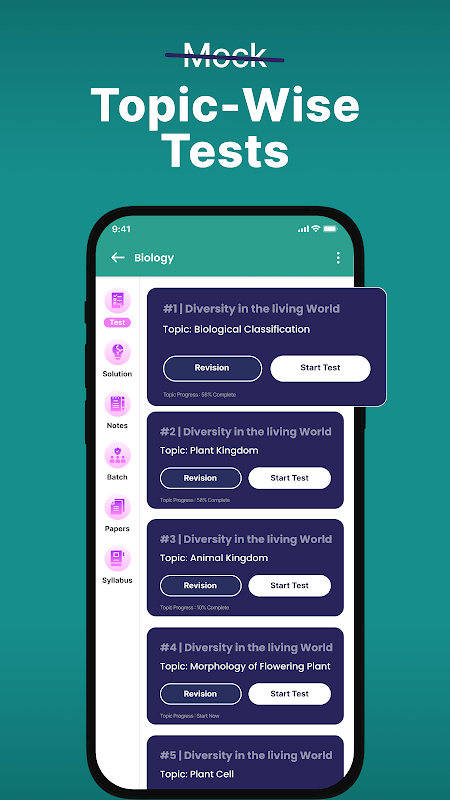 संरचित 1-वर्षीय रोडमैप: हमारी एनसीईआरटी-आधारित योजना यह सुनिश्चित करती है कि आप एनईईटी यूजी में सफल होने के लिए सभी आवश्यक विषयों को व्यवस्थित रूप से कवर करें। हमारा एनईईटी तैयारी ऐप प्रत्येक विषय के लिए व्यापक विषयवार एनईईटी नोट्स प्रदान करता है। आप अपनी सुविधा के अनुसार किसी भी समय परीक्षणों को दोहरा सकते हैं और अभ्यास कर सकते हैं।
