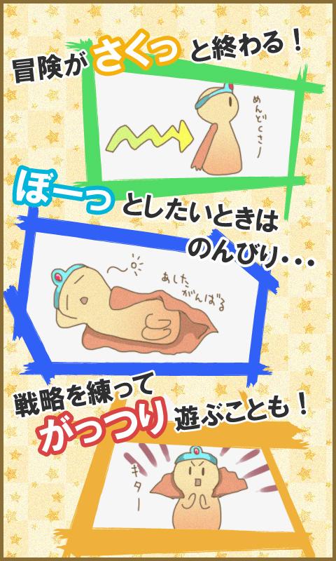 A:モンスターが育ち始めると少し面白くなってくると思います。ゲームが進むと育成に少し自由度が出てきます。そうすると「こんなスキルを身につけさせたらどうなるだろう?」とか考えられるようになり、もっと面白くなると思います。中には難しいダンジョンもあり試行錯誤するのも楽しいと思います。連続でプレイし続けるのも簡単ではないので、時間がある時はぜひじっくりと取り組んでみて下さい。時間が無い時は何も考えずにポチポチ押すだけでも楽しめることを目指しています。
