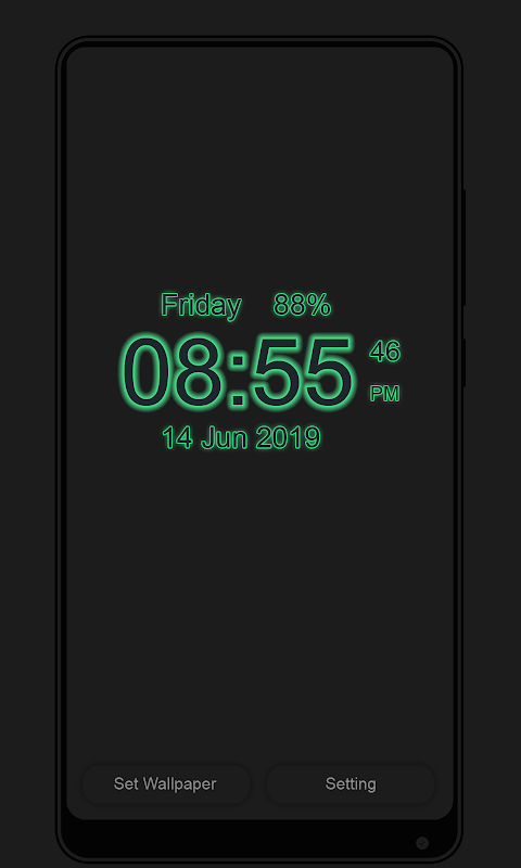 • Neon Digital Clock live wallpaper show your current time with second or AM PM formate, current date, day of week, battery percentage on your display.