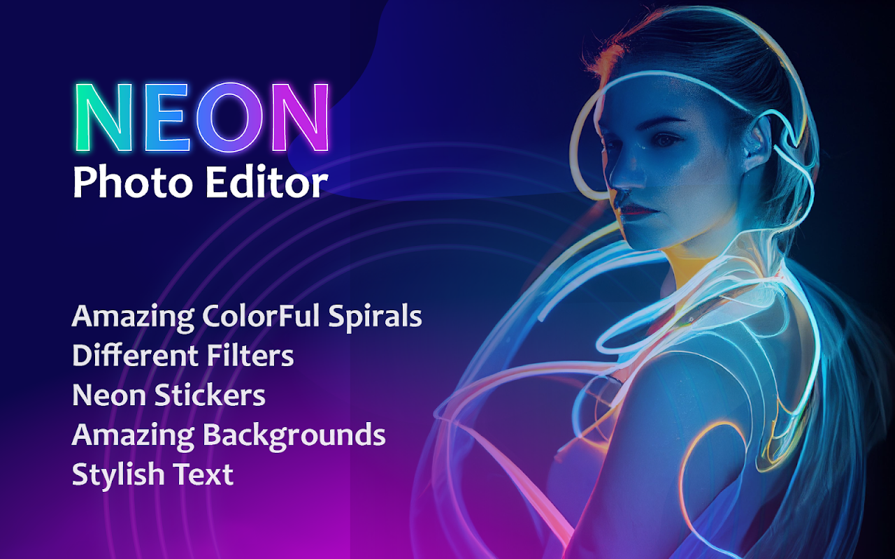 NeonArt photo editor is best photo editing app with neon blend effects and awesome filters for pictures. Edit like a pro and combine drip effects with the glowing spirals to create cyber punk theme. You don’t need any other photo editing app, once you have Neon photo editor it has all the features you need.