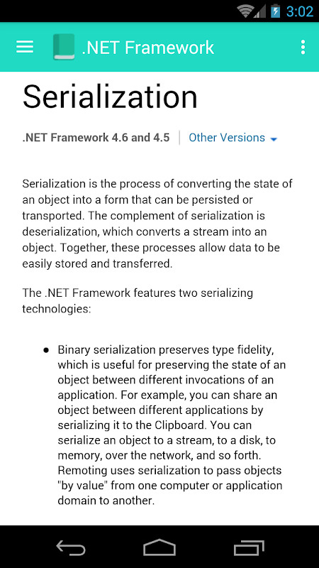 - Serialization in the .NET Framework.