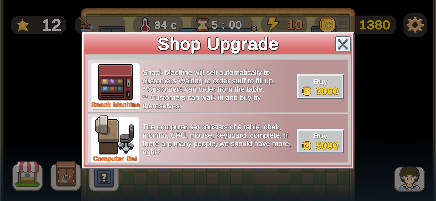 स्मारक की दुकान खोलें 90 के दशक में इंटरनेट कैफे के साथ, आप दुकान को अपग्रेड कर सकते हैं, खाना, पेय परोस सकते हैं, 90 के दशक में खुशियां जोड़ सकते हैं। आगे के विकास के लिए पीढ़ी से पीढ़ी तक पारित किया गया। जिस दुकान से तोड़ा जाता था, वह किया जा सकता है। चलो हमेशा की तरह हलचल में वापस आते हैं। आओ कोशिश करते हैं।