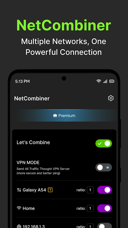 अपने बैंडविड्थ को अधिकतम करने और एक सहज, अधिक विश्वसनीय इंटरनेट अनुभव सुनिश्चित करने के लिए वाईफाई, सेल्युलर, लैन, यूएसबी टेथरिंग और अन्य नेटवर्क का एक साथ उपयोग करें।