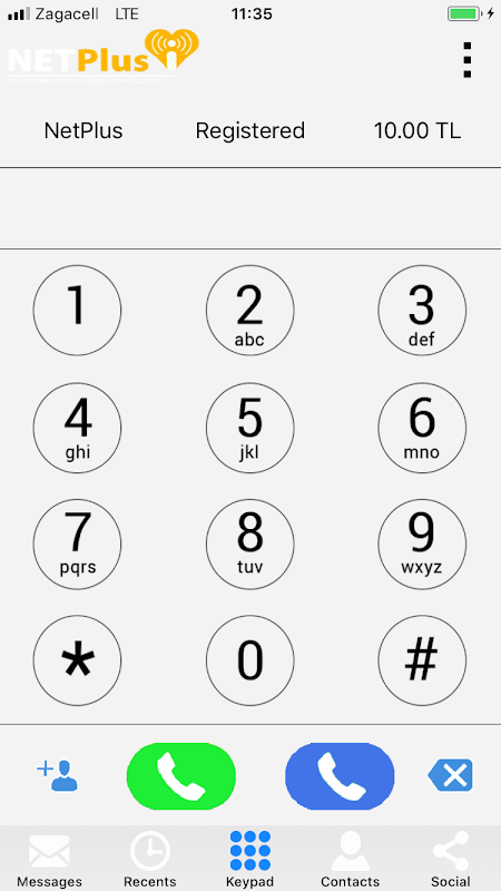 नेटप्लस टेलीकॉम के लिए डिज़ाइन किया गया वीओआईपी एप्लीकेशन।
