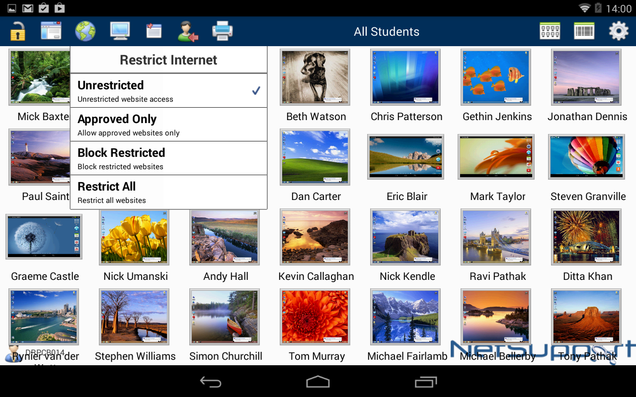 अपने NetSupport डेस्कटॉप अध्यापक सांत्वना के साथ रखा जब एंड्रॉयड डिवाइस और स्मार्टफोन संगत, अध्यापक सहायक आप सभी छात्र कार्यस्थानों की कुंजी नियंत्रण और निगरानी बनाए रखने में मदद करता है.