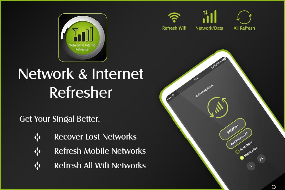 ★ Refreshes WiFi connection , Data connection & Signal Strength together in one click.