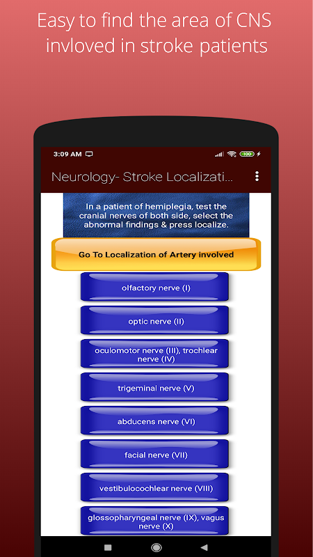 A patient of stroke or hemiplegia often has an infarcts / bleed / tumor causing it & affecting a part of the central nervous system. The CNS consists of the cerebrum, cerebellum, mid-brain, pons, medulla, and any part of this ecosystem can be affected. A thorough clinical examination helps find out which ares of the central nervous system is affected. This app is meant to guide you through the steps of the relevant clinical examination & gives you a report based on your findings.