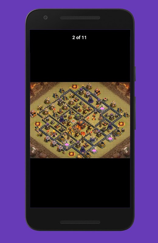 It contains Maps from Town Hall 1 to town hall 11 with three category War, Trophy and Hybrid.