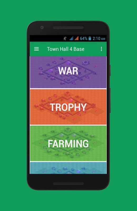 It contains Maps from Town Hall 4 with three category War, Trophy and Hybrid.